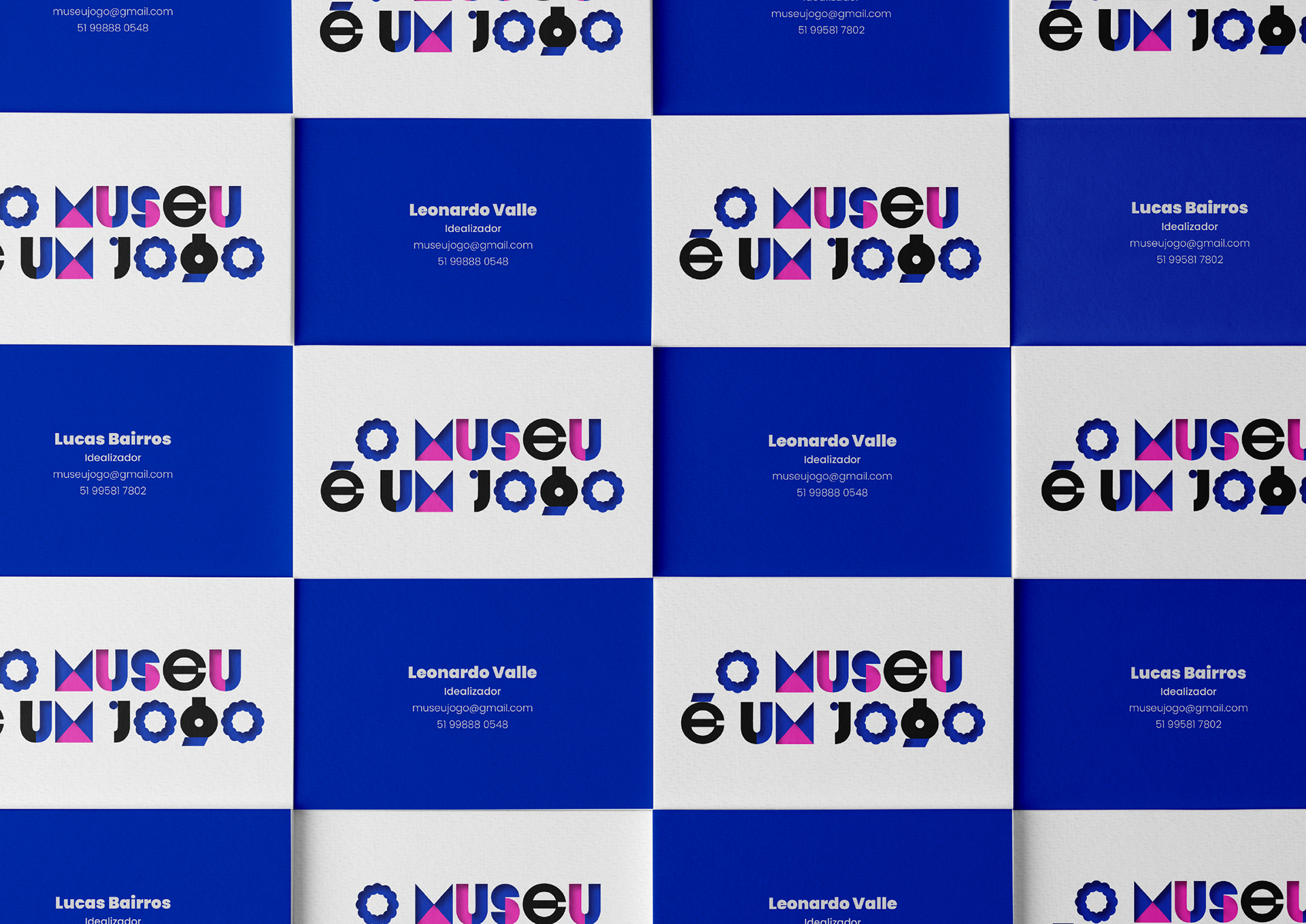 A identidade visual do projeto O museu é um jogo parte da ideia de montar, desmontar e rearranjar, um processo contínuo de construção e descoberta. Essa lógica orienta não apenas a forma como os elementos gráficos se organizam, mas também como o público pode ser convidado a interagir com eles: de modo acessível, inventivo, contemporâneo e, assim como o próprio projeto, também educativo. O conceito busca despertar curiosidade e encantamento, sem recorrer a uma linguagem infantilizada. A proposta é estabelecer um diálogo inteligente e sensível para diferentes públicos, valorizando a experimentação como experiência estética. Graficamente, a identidade se constrói a partir de símbolos e formas geométricas que se combinam e se transformam, evocando a ideia de movimento, composição e, por que não, jogo. A tipografia, com destaque visual e papel ativo na comunicação, reforça essa dinâmica ao funcionar também como elemento gráfico — ora estruturada em palavra, ora desconstruída em objetos e personagens. O resultado é uma identidade viva e flexível, que pode se reinventar em distintas aplicações, mantendo sempre o equilíbrio entre clareza e imaginação.